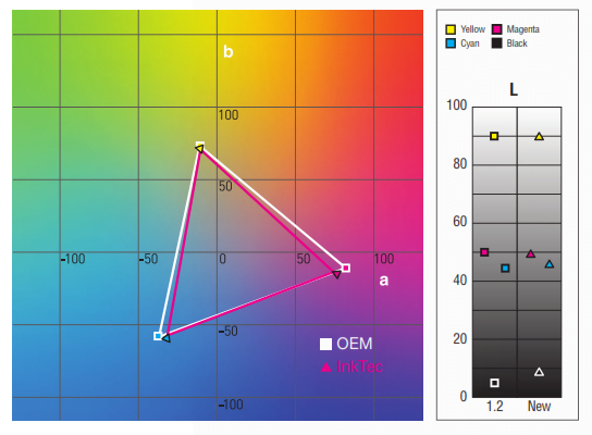 Los pigmentos de alta densidad proporcionan un amplio espectro de color equivalente a la tinta OEM
