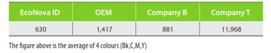 * La tinta EcoNova ID es la que contiene menos cloruros en su formulación (los cloruros pueden provocar problemas en el sistema respiratorio, piel y ojos).